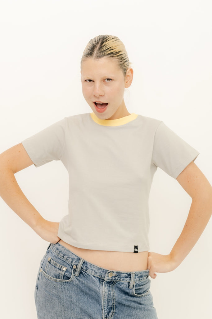 BABY TEE - GRIS CUELLO AMARILLA
