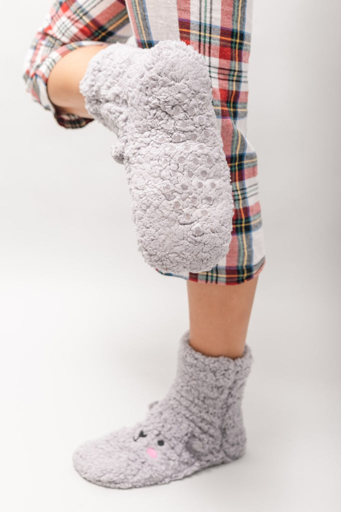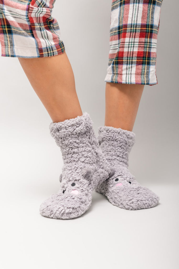 Medias de felpudo (fleece grueso) con carita de oso.